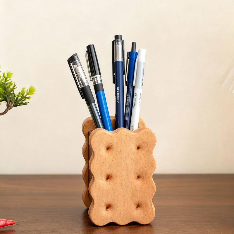 • Cookie Shaped Wooden Pen Holder Cute Desk Organizer