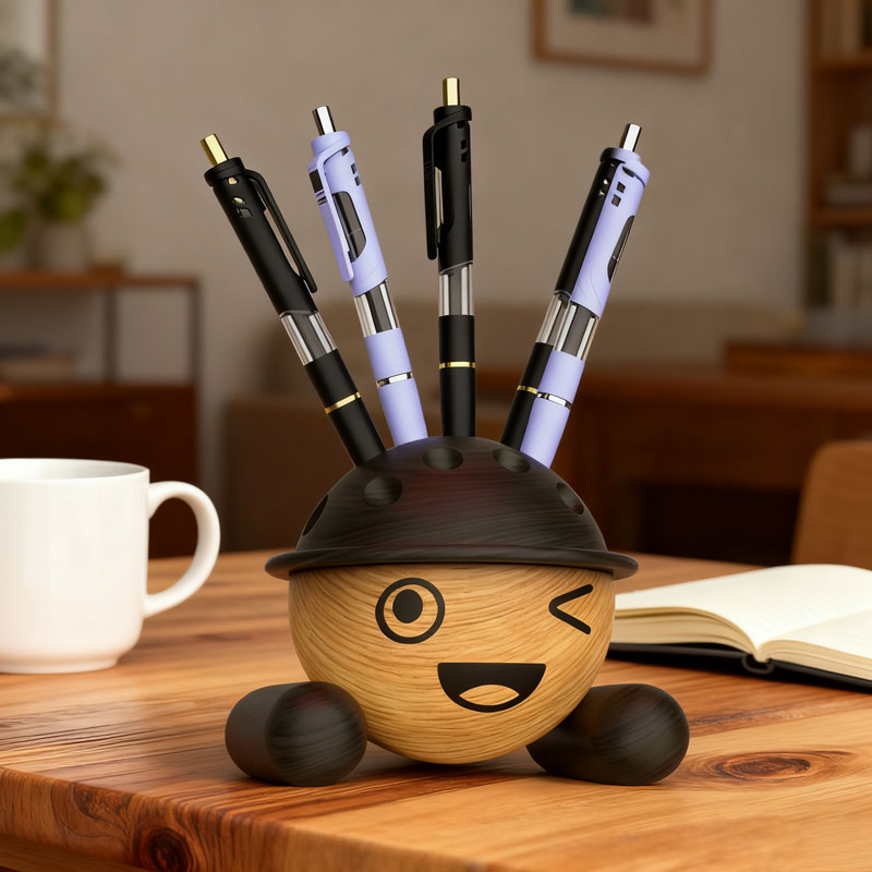 Funny Face Wooden Pen Holder Cute Desk Organizer
